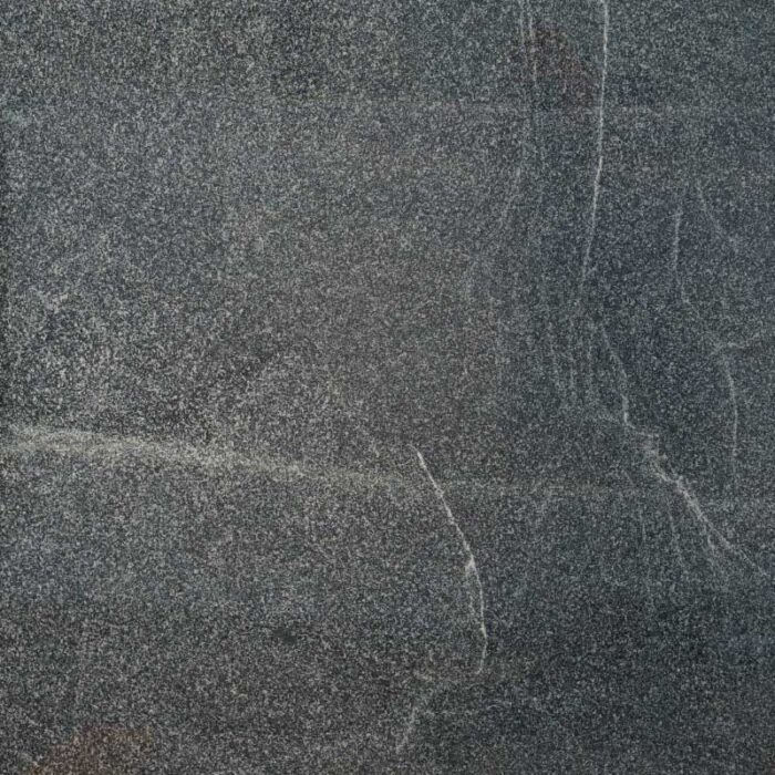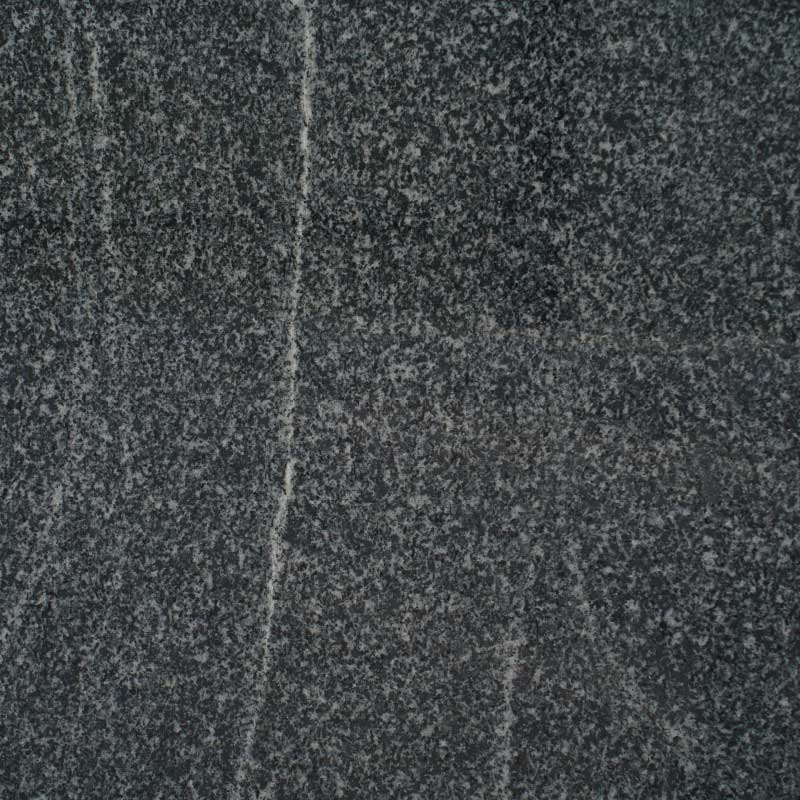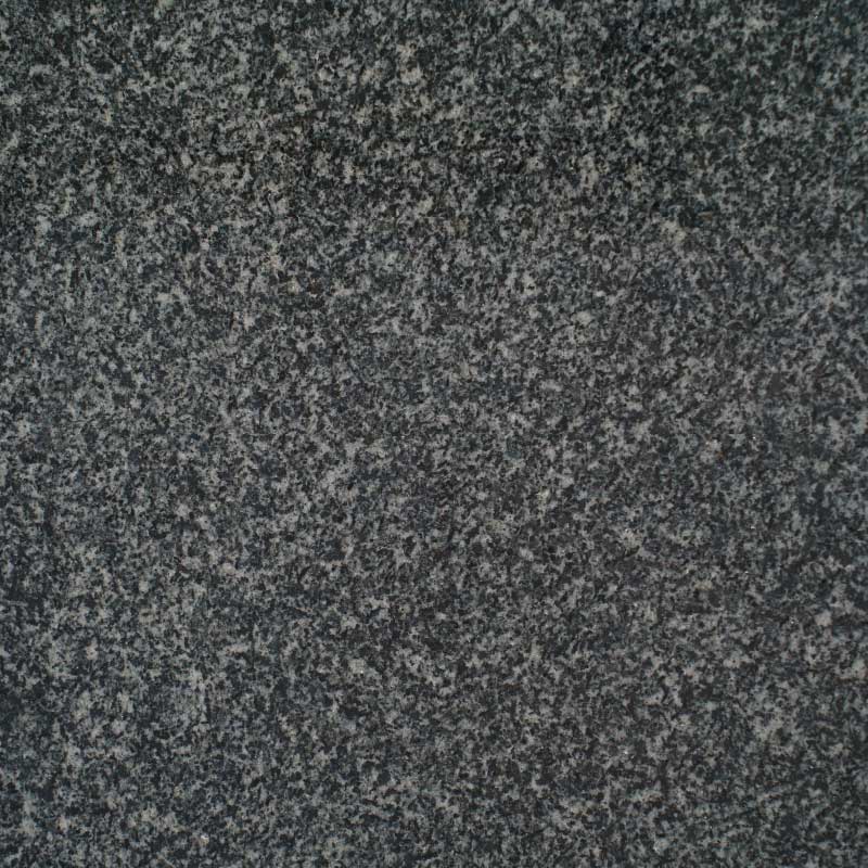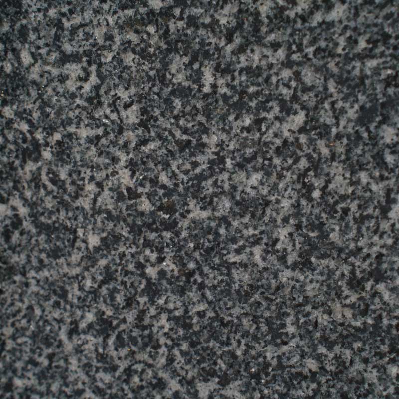 Granito de cor predominantemente preto, com granulado cinza e branco.